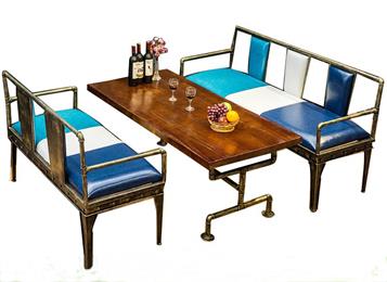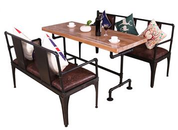 美式鄉村復古鐵藝水管做舊休閑卡座沙發桌椅