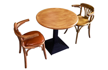 實木雙人三人小圓桌咖啡廳酒館復古做舊鐵藝腳圓桌