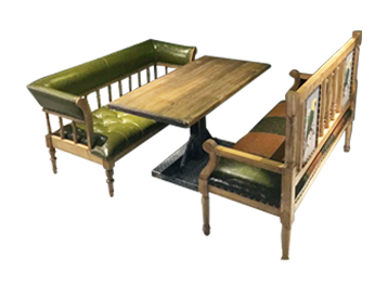 復古懷舊休閑咖啡廳實木桌沙發(fā)卡座組合