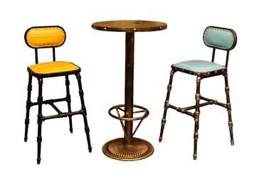 咖啡廳復古高腳椅吧臺凳柳釘桌椅組合